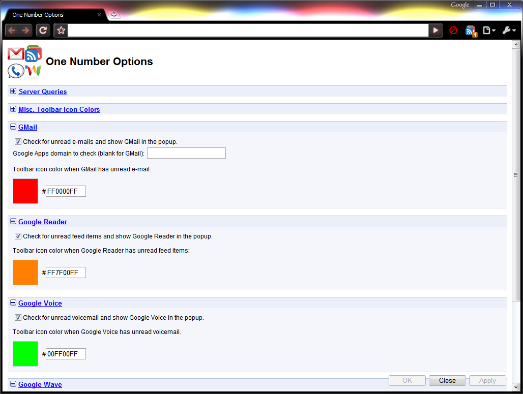One Number: Gmail, Google Reader, Wave and Voice Notifier for Chrome