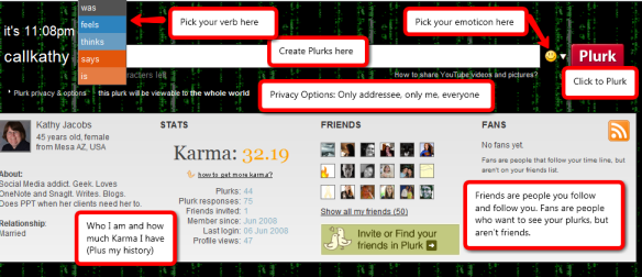 Others features smileys, threaded conversations, mouseover posts, and says, feels, wishes. I personally feel that Plurk seems to demonstrate they were aiming the product at teens. The colors, interface, Karma system and interactive features verify this suspicion for me.